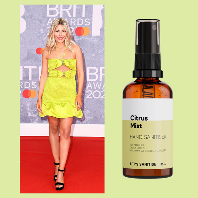 Mollie King Turned heads in citrus yellow. This pocket-sized citrus mist spray has a natural blend of lemon, orange blossom, and lemongrass that work together in this uplifting scent to boost your mood. Her bright and bold look, therefore, had to be accompanied by a refreshing and vibrant loop scent.